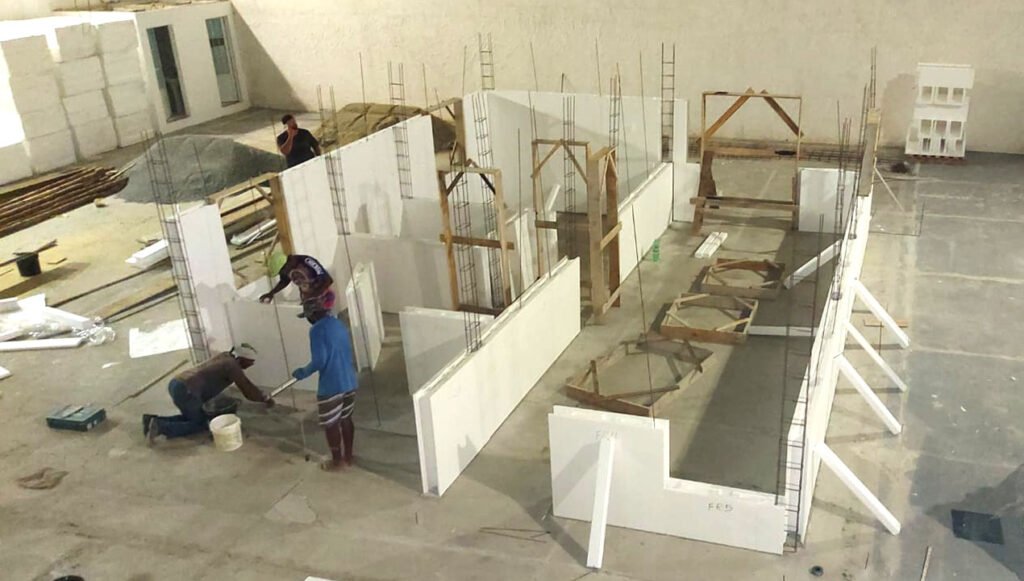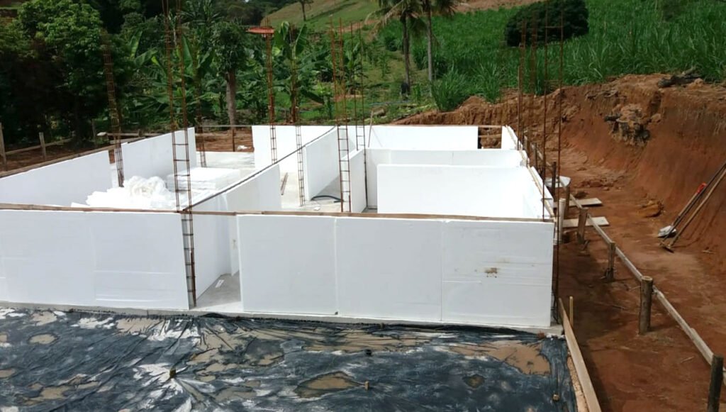 ICF é uma tecnologia inovadora que utiliza placas de poliestireno expandido (EPS) como fôrmas para concreto, criando paredes isoladas térmica e acusticamente.