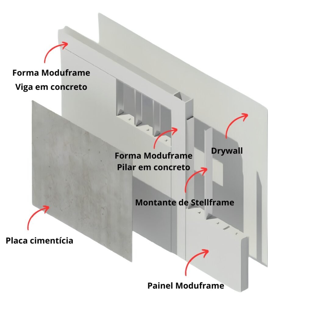 O Moduframe é um sistema que combina painéis de EPS com perfis de Light Steel Frame para maior eficiência estrutural e versatilidade.